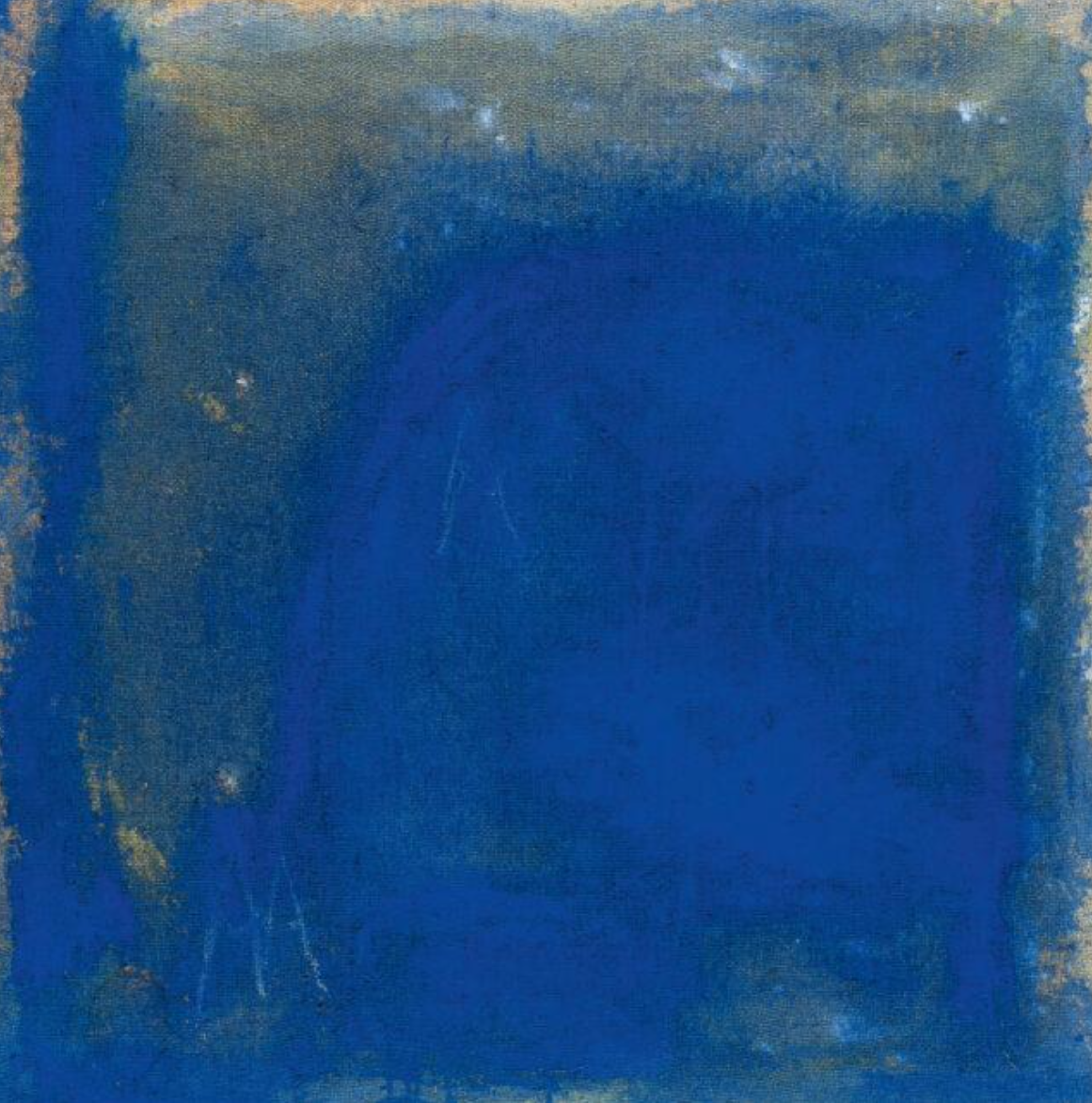 Das unbetitelte Werk aus dem Jahr 1982 steht exemplarisch für die malerische Haltung von Nicola de Maria. Die intensive blaue Fläche, die unweigerlich an Yves Klein (1928–1962) erinnert, dominiert die Komposition, ohne sie vollständig zu schließen. Das Blau ist also nicht als monochromes Absolutum gedacht, sondern als lebendiger Farbraum, bei dem auch der Bildträger sichtbar bleibt – die ungrundierte Leinwand tritt stellenweise hervor und wird integraler Bestandteil der Komposition.
