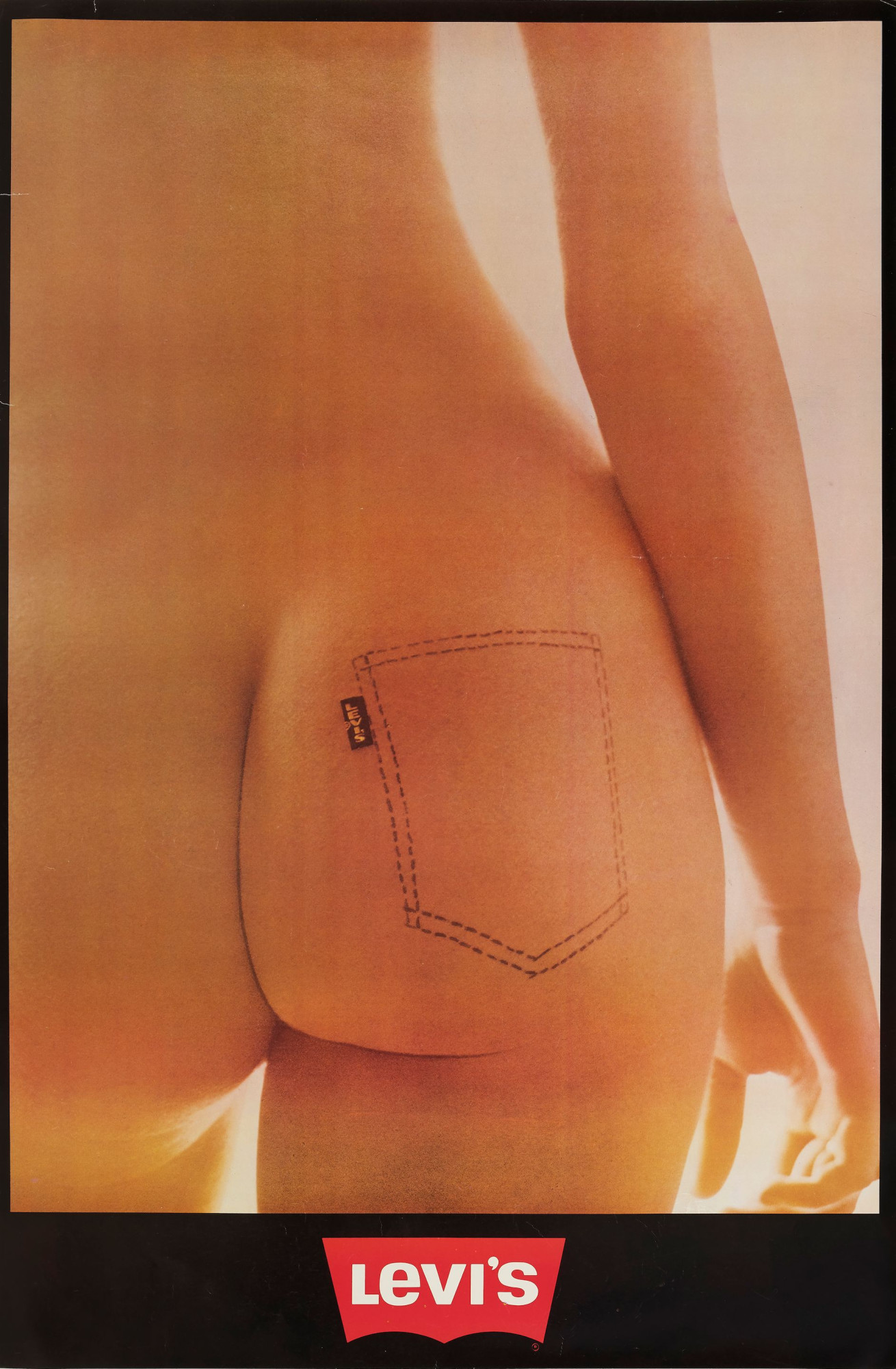Diese ikonische Fotografie aus den 1970er-Jahren, aufgenommen von der belgischen Künstlerin Ida van Bladel, zeigt ein nacktes Gesäß einer Frau mit dem Vintage-Etikett des Jeansherstellers Levi's. Das Unternehmen zeigte die offizielle Werbekampagne nie in seinen Geschäften, weil sie schlussendlich doch als unangemessen für den Mainstream-Einsatz angesehen wurde.